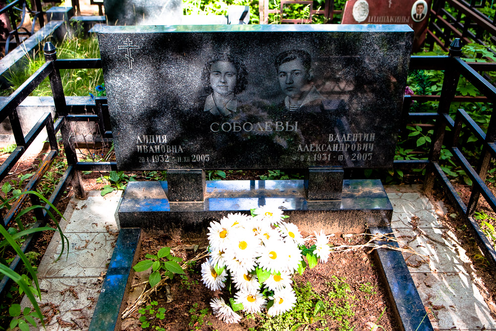 Взгляните ниже на могилу супругов Соболевых, почти одногодки, прожили долгую жизнь вместе. Она не смогла выдержать потерю любимого, и, спустя семь месяцев, ее одиночество закончилось:
