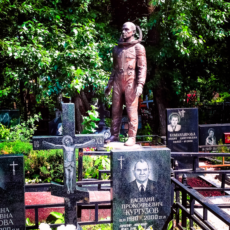 На Останкинском кладбище похоронено много летчиков-космонавтов. Очень неожиданно и внезапно было увидеть единственную скульптуру среди череды «шлёп камень, шлёп фото, да побольше!»: