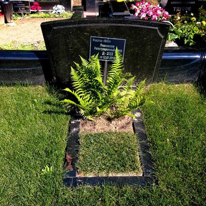 Останкинское кладбище переполнено, ограды примыкают друг к другу плотными рядами без проходов, но зато оно освоило колумбарий. Леоновское — поскромнее, иногда умеет договориться с властями и отвоевать еще несколько метров земли. После этого вдоль забора можно разместить еще несколько унылых, абсолютно идентичных памятника с «фотомрамором». А вот это, как мы поняли, идет оптом «ровно пять», ни больше, ни меньше: