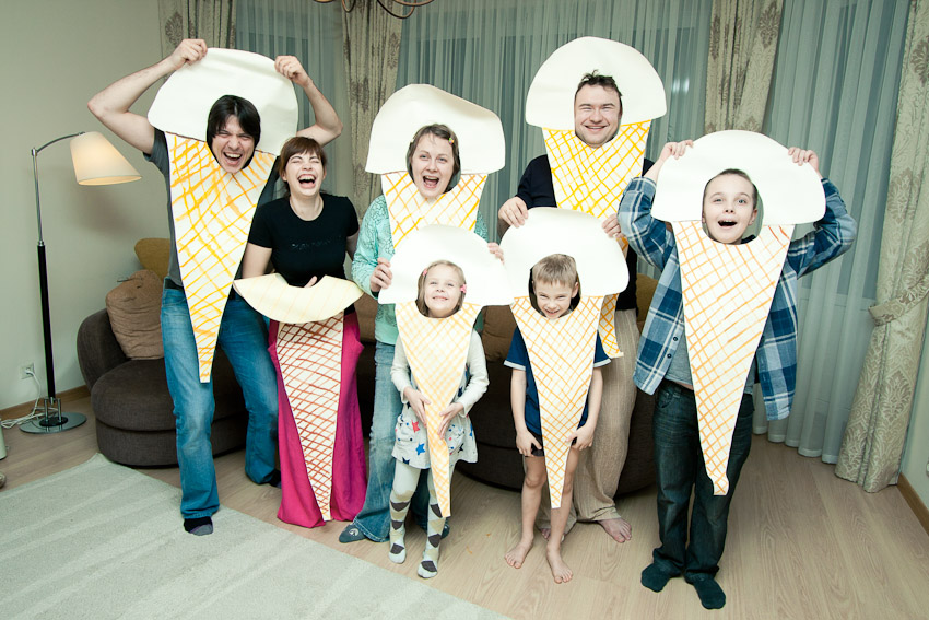 В конце радостные и довольные использовали получившийся реквизит: