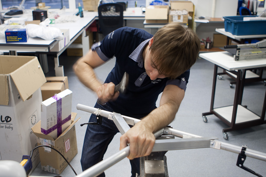 Восхищаемся внешним видом и проверяем вес, пока один человек легко поднимает всю конструкцию: