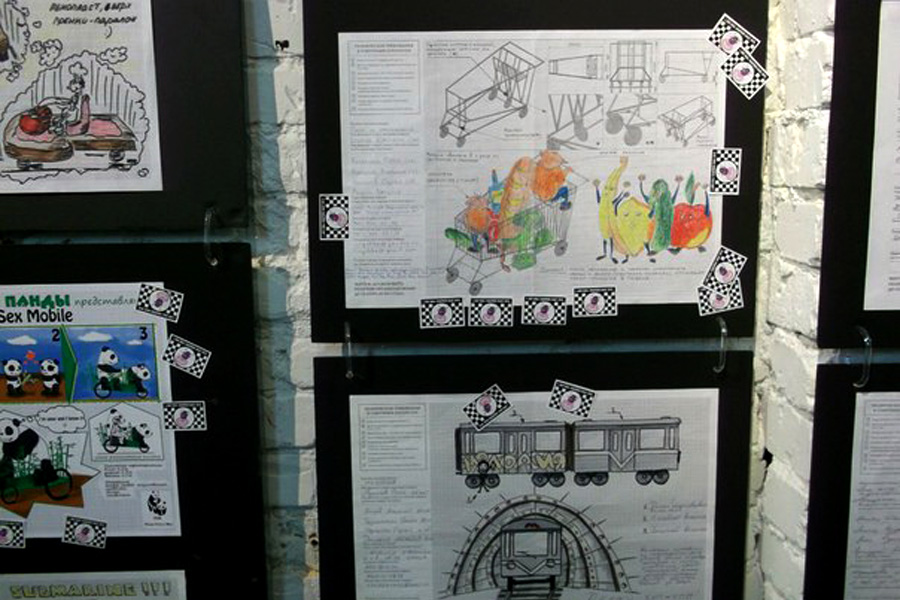 Ну почему бы не принять участие, тем более тема настолько близка к нашим всем поделкам ) Собрали команду, придумали конструкцию, нарисовали чертеж, отправили письмо и вуаля — эскиз на стенах среди работ других участников. Комиссия, состоящая из представителей шоу-бизнеса и журналистов отобрала для участия 60 из 252 представленных работ. Вот он, наш рисунок, обкленный стикерами-голосами: