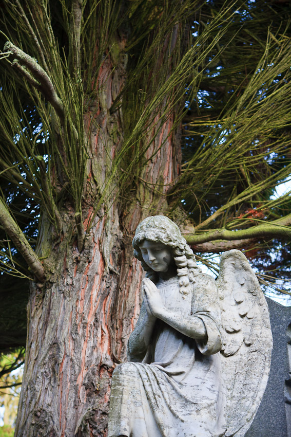 Природа удивительно сочетается с фигурками ангелов и дев: