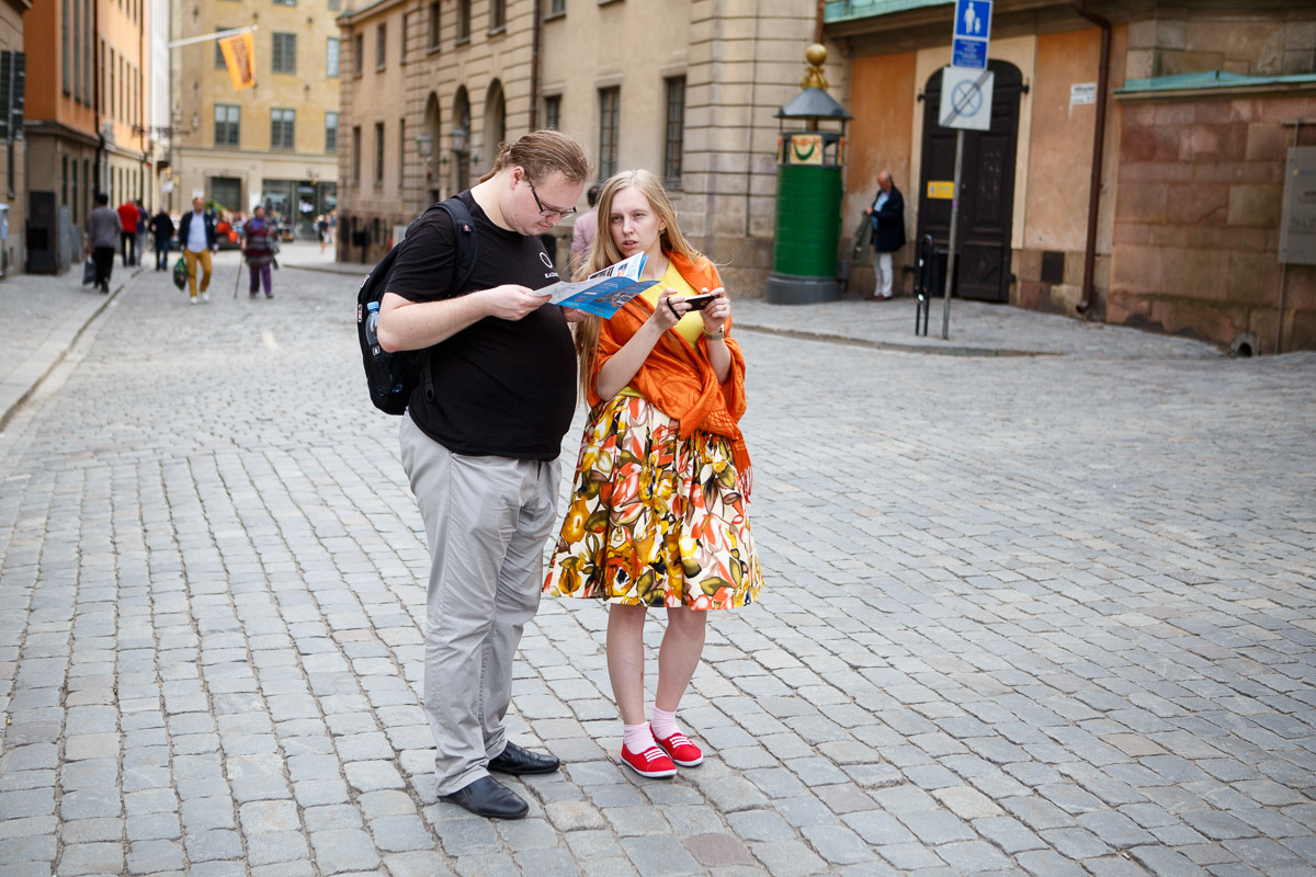 В поездках стараюсь не забывать о своей тяге к эмоциям, отношениям и позам случайных прохожих. Совсем обленился менять объектив, дабы выцеплять людей из толпы, зато приспособился довольно точно кадрировать парочки, фотографируя незаметно «от пуза», лишь примерно представляя картинку в видоискателе.